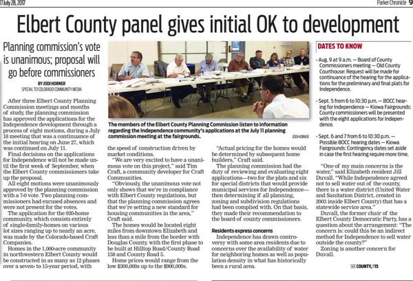 Parker Chronicle • 5 September 2023 Commissioner Approval for Independence Development Journalist, copywriter, interview, photographer